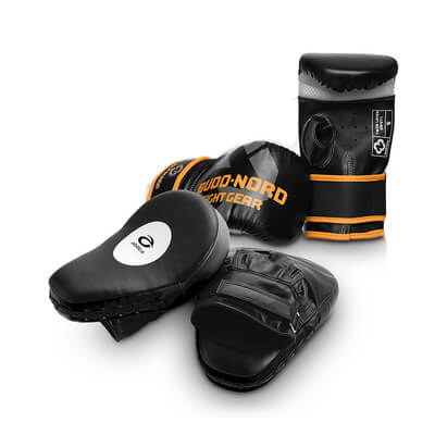 En Boxercise-pakke med 2 stk håndmittser fra Abilica og et par sekkehansker fra Budo-Nord.