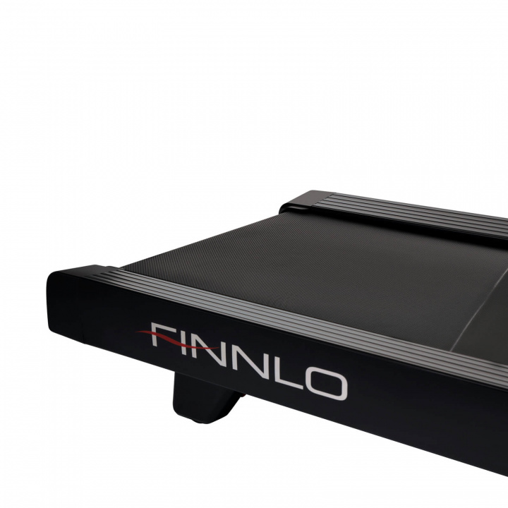 En høyytelses tredemølle for hjemmebruk fra Finnlo med moderne multimediasenter og SuperSoft XXL tredemølle.