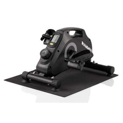Farge: Svart Dimensjoner:   Type: LCD-skjerm Viser: Distanse, hastighet, kalorier, tid Tekniske detaljer:   Motstandsnivåer: 8 Drivsystem: Beltedrift Strømforsyning: Batteri (AA) Pedaler/fotplate: Avstand 15 cm Transporthjul: Ingen Vekt: 9 kg Montering nødvendig: Ja Øvrig info: Fotplateavstand: