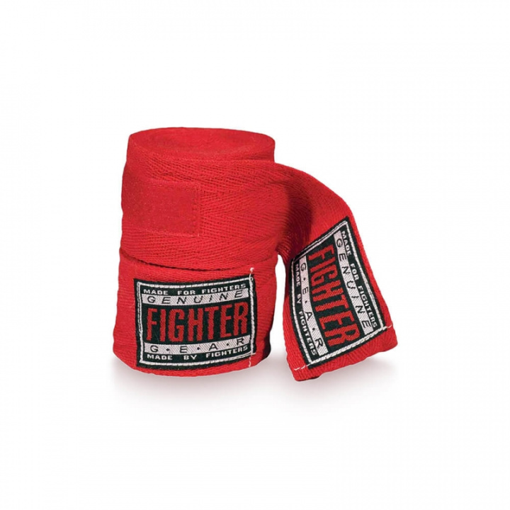Rød boksebandasje fra Fighter som er 250 cm lang og tilvirket helt av bomull.