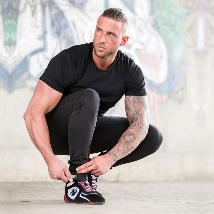 En stilig og funksjonell tyngdeløftsko i sort, hvit og rød farge fra Gorilla Wear i begrenset opplag! Disse treningsko tilbyr en god komfort og er både lett i vekt og bidrar til bedre balanse og holdning.