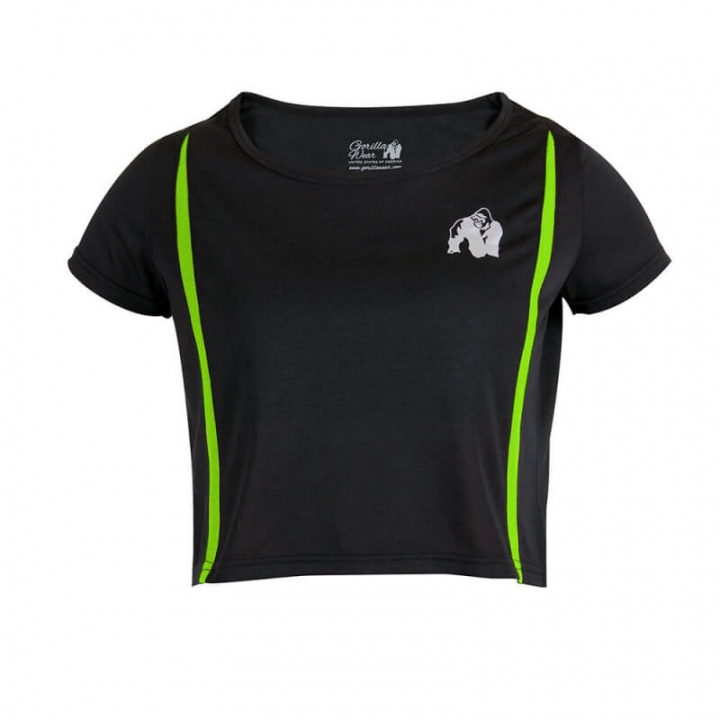 En elegant sort kort topp med stilige grønne kontraststriper fra Gorilla Wear.