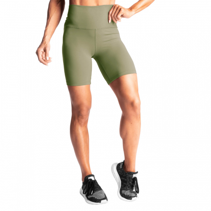 Shortsene er laget av mykt børstet materiale som føles behagelig mot huden og er designet for å tåle både svette og bevegelse. Den har en høy midje som slutter ved knærne, minimalt trykk og ingen søm på utsiden av benet.