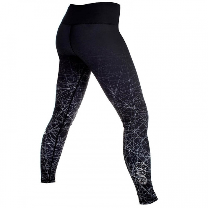 Et par svarte kompresjonstights fra Fighter for damer som leverer komfort og gir støtte og beskyttelse til musklene under anstrengende aktiviteter.