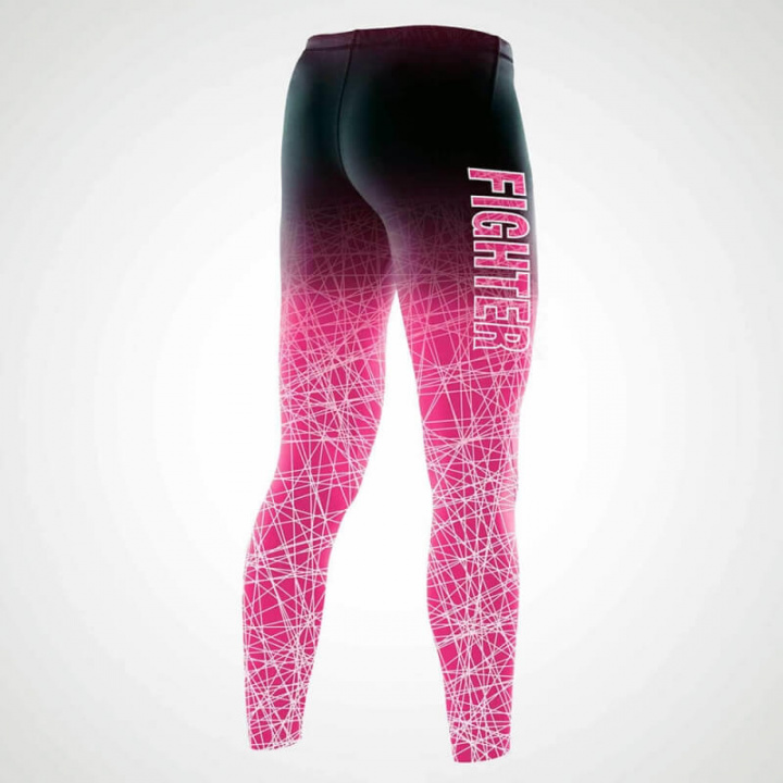 Et par svarte og rosa kompresjonstights fra Fighter for damer som leverer komfort og gir støtte og beskyttelse til musklene under anstrengende aktiviteter.