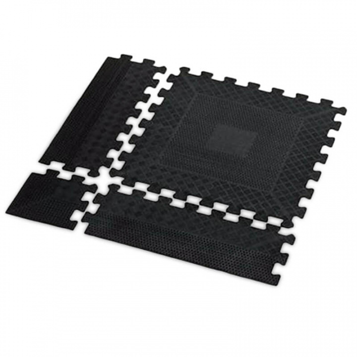 Denne puslematten er for krevende bruk og beskytter gulv og utstyr. 6 mm tykk. Gummimatten er i 16 deler og montert med alle delene blir den ca. 119 x 119 cm. Du kan montere matten på flere måter og sette flere matter sammen. De 16 elementene består av 4 stk. deler 50x50 cm, 8 stk. sider 50x19 cm og fire hjørnestykker som er 19x19 cm. Gummilukt forekommer.