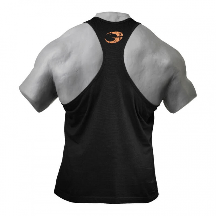 Denne svarte singlet har stor GASP Industries logo på brystet og detaljert søm i åpningene.