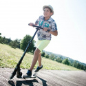 En svart kickbike fra Worker i en kompakt design og sterk aluminiumsramme og en effektiv bakbrems.