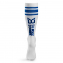 Kne høye hvite og blåe sokker perfekt for treningsstudioet eller hverdags.