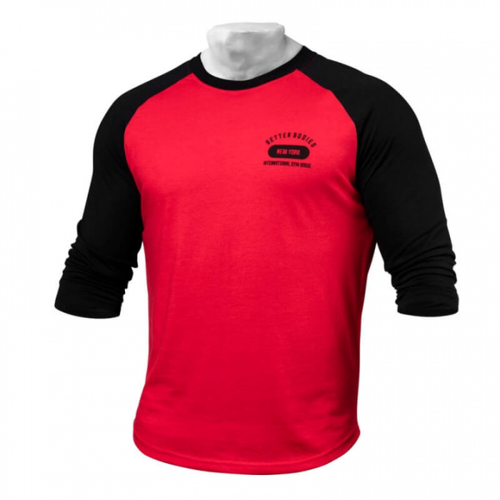 En stilren baseball T-skjorte i rødt fra Better Bodies laget i et tynt og supermykt materiale som består av en polyester- og bomullsblanding.