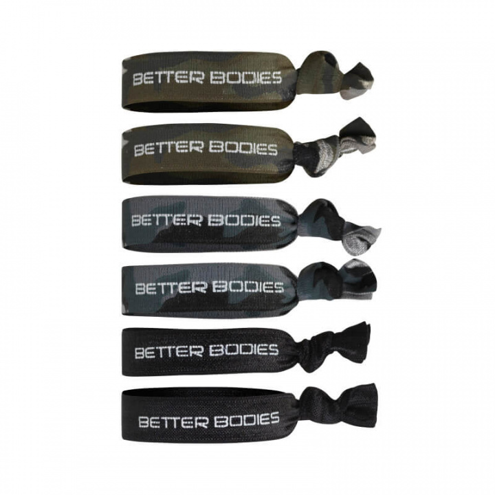 Myke og kamuflasjefargede hårbånd med stretch fra Better Bodies som holder håret på plass og motvirker effektivt knuter og floker. Båndet passer perfekt til treningsrunden eller andre aktive situasjoner og er for smidighetens skyld utstyrt med en permanent knute, samt kan puttes på håndleddet når det ikke er i håret.