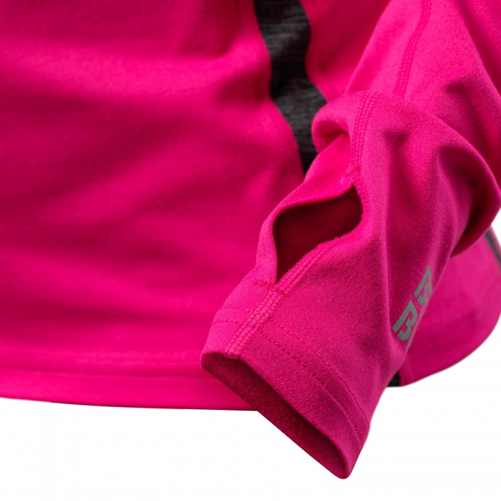 En funksjonell rosa genser fra Better Bodies med stilige rosa kontrastpaneler og et subtilt trykk på ned ved enden av venstre armen.