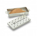 Det finnes mange sorter røykflis av ulike treslag. Test deg fram og finn din favoritt. Med avtagbart lokk og smidig håndtak. Produsert i rustfritt stål.