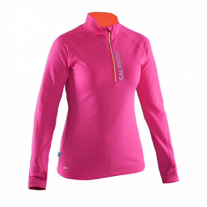 En rosa langermet trøye for kvinner med krage og kort glidelås fra Salming lemplig i kaldere vær.