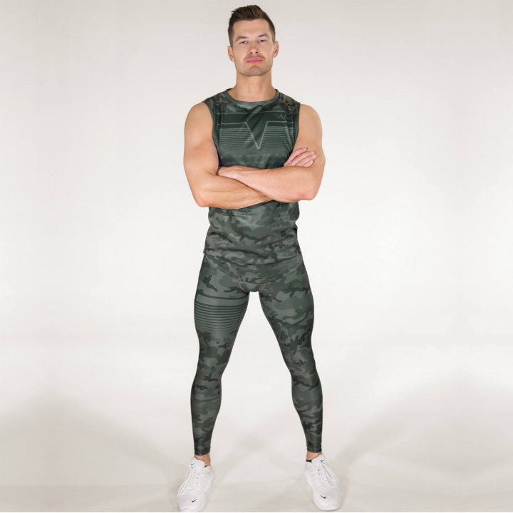 Sniper Compression Tights Camo Green fra Gavelo med sin stabile kompresjon og ventilasjon, klarer seg like bra i treningsstudioet som i løpebanen.