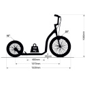 Farge: black/yellow Dimensjoner:   Lengde: 153 cm Bredde: 50 cm Høyde: 100 cm Tekniske detaljer:   Styrejustering: Nej Maks belastning: 150 kg Ramme: stål Dekk: foran 20x2.125