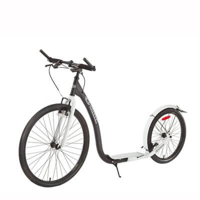 En ekstra stabil sparkesykkel med et robust design fra Walker, som passer for flatere veier, men klarer også lettere terreng. Rammen består av en slitesterk stålkonstruksjon, som har kapasitet for å klare en brukervekt på hele 120 kilo, og har en egenvekt på 11 kg. Den har V-bremse både fremme og bak, og et ekstra bredt styre med justerbar høyde fra 90-100 cm. Den har en totallengde på 170 cm, hvorav ståbrettet utgjør 35 cm av den totale lengden, noe som gir god plass til føttene, og dermed økt komfort. Framhjulene er 26'', og bakhjulene 20'', med aluminiumsfelger.