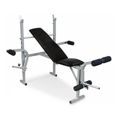 En stabil treningsbenk for hjemmebruk fra inSPORTline med justerbar ryggstøtte og med muligheten til å trene både beincurls og brystpress.